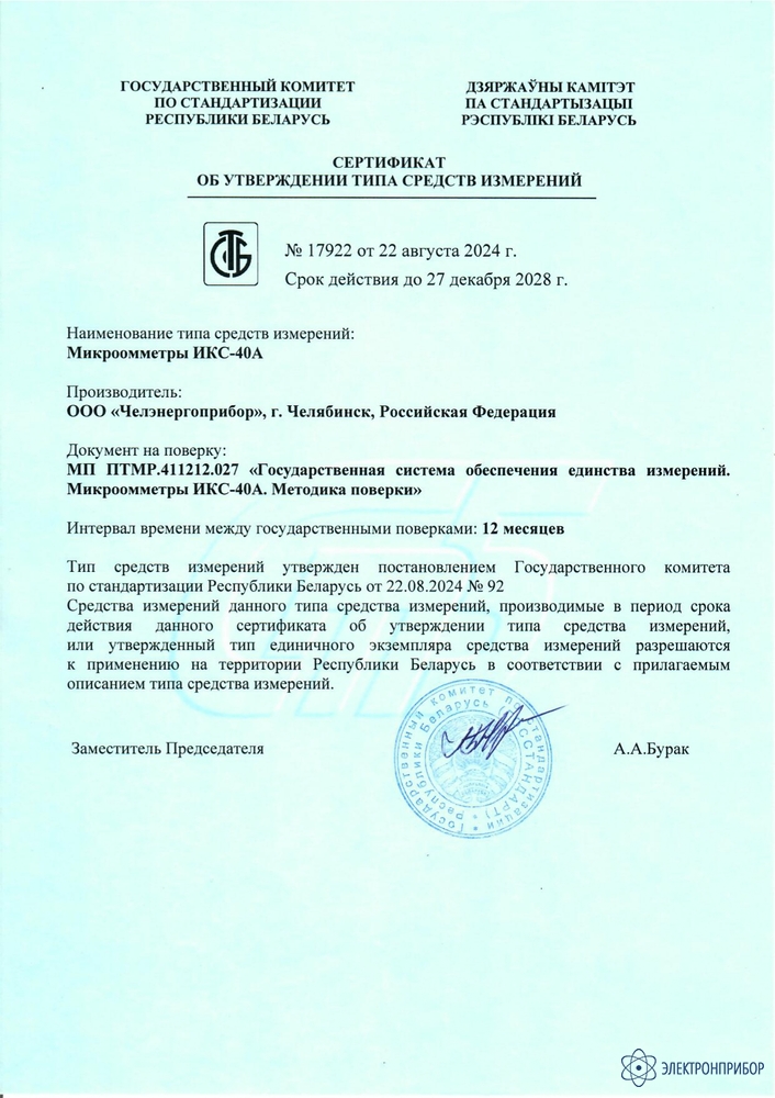 - межповерочный интервал 2 года.