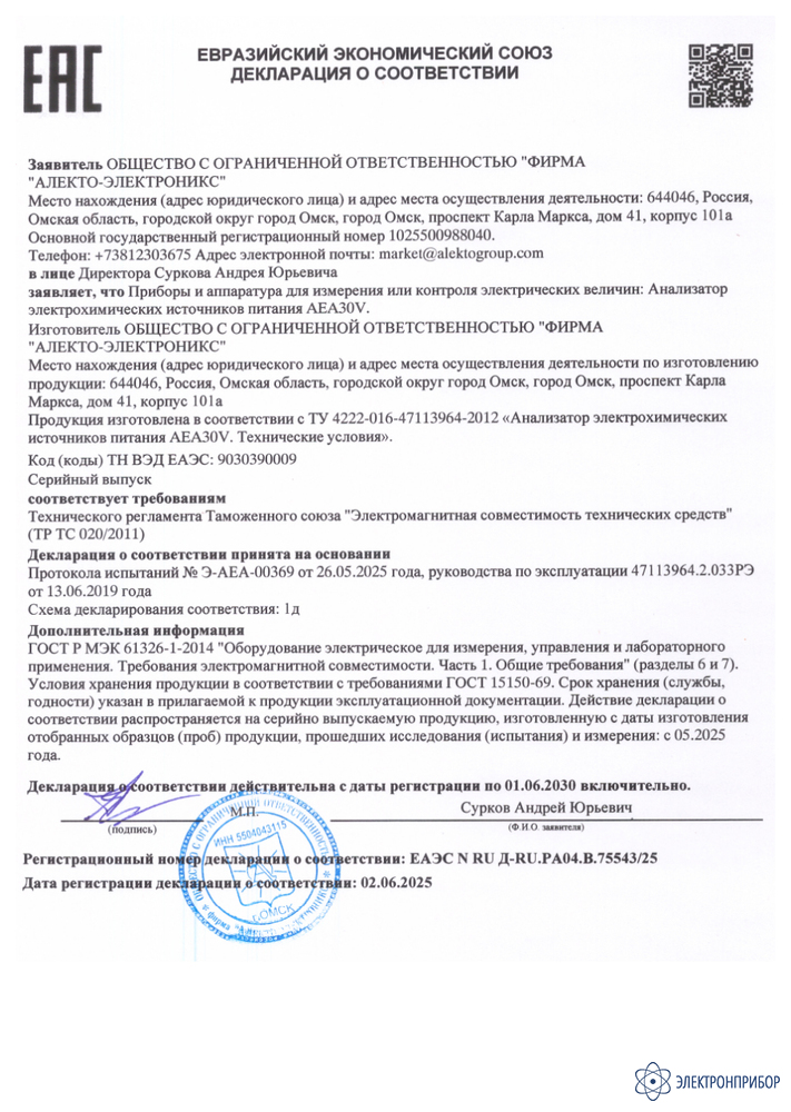 Технические характеристики анализатора аккумуляторных батарей AEA30V: