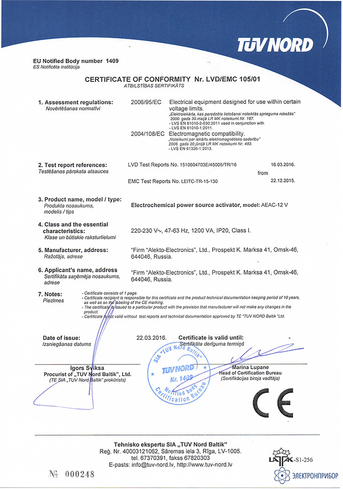 Активатор АЕАС-12V является стационарным устройством с питанием от сети переменного тока с номинальным напряжением 220 В (230 В) частотой 50 Гц или 60 Гц.