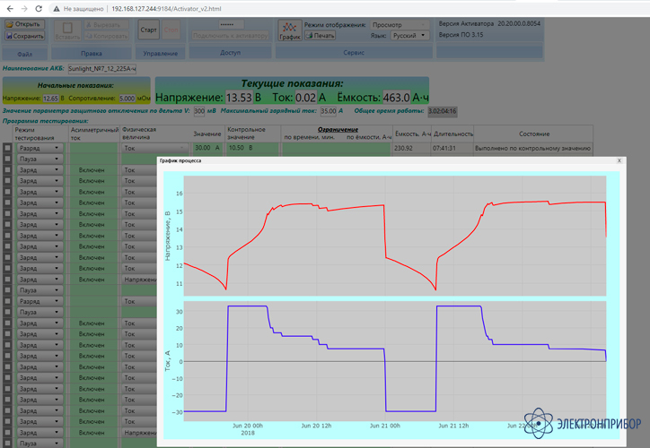 - Построение графиков процесса обслуживания поможет выявить неисправности АКБ, например: дефектные элементы, пробой сепараторов, износ элементов.