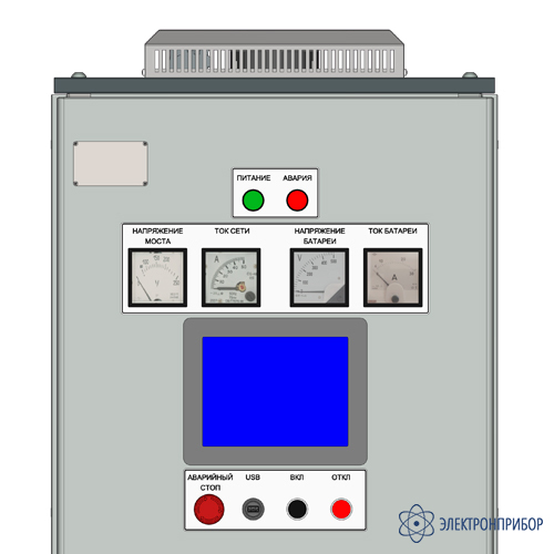 - Силовая часть шкафа управления является основным зарядно-разрядным устройством, которое управляет общим током батареи аккумуляторов и обеспечивает возврат энергии в питающую сеть в режиме разряда.