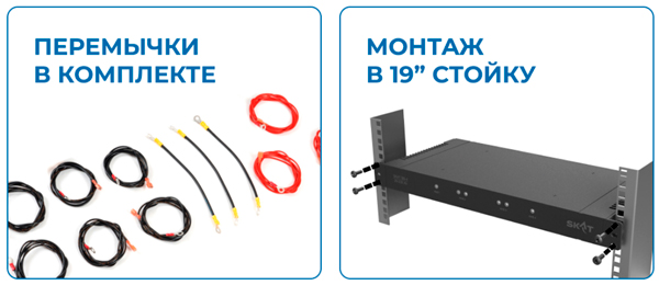 SKAT BB обладает встроенной защитой от короткого замыкания и переполюсовки, а также возможностью работы с цепями из 4 аккумуляторов и обеспечивает стабильную и безопасную работу всей системы.