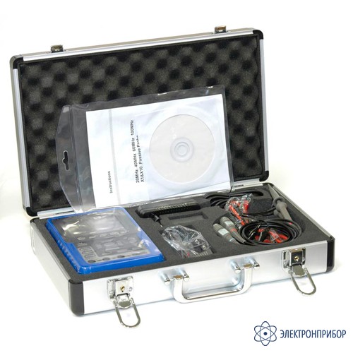 № Наименование Количество 1. Осциллограф-мультиметр цифровой двухканальный запоминающий АСК-2068 1 2. Сетевой адаптер 1 3. Осциллографический щуп 2 4. Измерительный щуп к мультиметру 2 5. Модуль расширения для измерения малых емкостей 1 6. USB кабель для подключения к ПК 1 7. Токовый шунт 1 8. Устройство для калибровки осциллографических пробников 1 9. Руководство по эксплуатации 1 10. Программное обеспечение (полностью на русском языке) 1 11. Жесткий кейс для транспортировки 1 12. Ключ для кейса 1 -