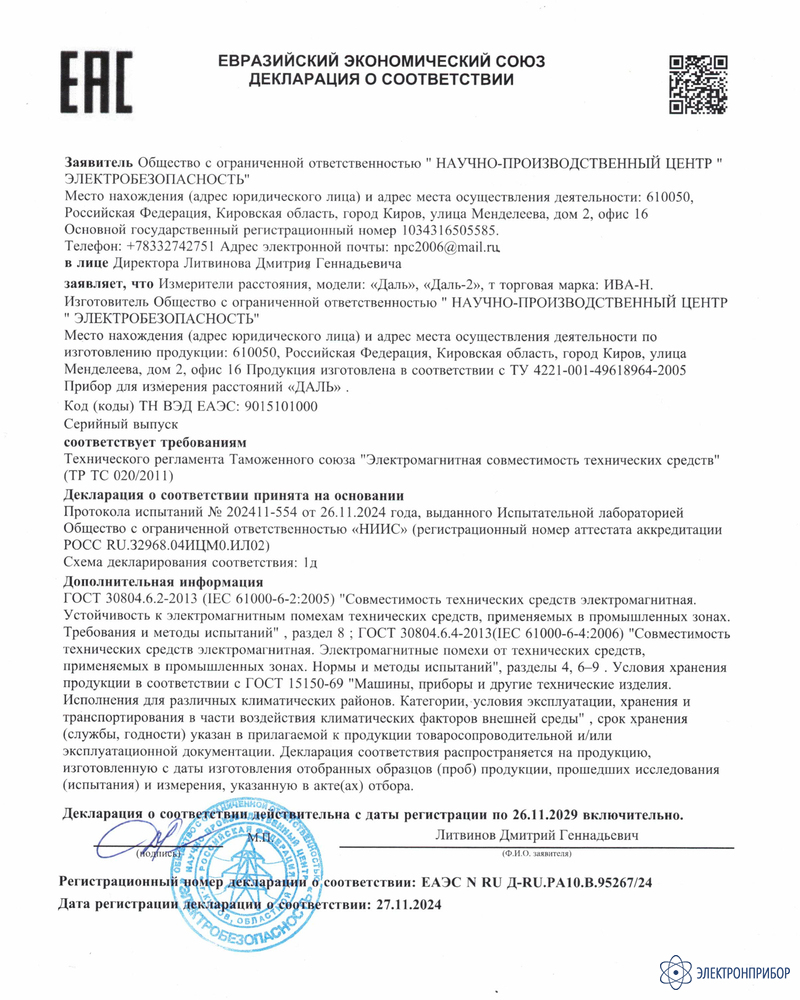 Назначение ультразвукового измерителя расстояний Даль-2: