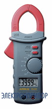 ХАРАКТЕРИСТИКИ ПАРАМЕТРЫ ЗНАЧЕНИЯ ПЕРЕМЕННОЕ НАПРЯЖЕНИЕ Пределы измерений 400 мВ; 4; 40; 400; 600 В Погрешность ± (1,5 % + 5 ед. счета) Макс. разрешение 0,1 мВ Полоса частот 40…500 Гц Измерение ср. кв. значения синусоидальный сигнал Входной импеданс 9 МОм/100 пФ Защита входа 600 В ПОСТОЯННОЕ НАПРЯЖЕНИЕ Пределы измерений 400 мВ; 4; 40; 400; 600 В Погрешность ± (0,7 % + 2 ед. счета) Макс. разрешение 0,1 мВ Входное сопротивление 9 МОм Защита входа 600 В ПЕРЕМЕННЫЙ ТОК Пределы измерений 400; 600 А Погрешность ± (1,9 % + 5 ед. счета) Максимальное разрешение 0,1 А Полоса частот 50…400 Гц Измерение ср.кв. значения синусоидальный сигнал Защита входа 600 А ПОСТОЯННЫЙ ТОК Пределы измерений 400; 600 А Погрешность ± (1,5 % + 7 ед. счета) Максимальное разрешение 0,1 А Защита входа 600 А СОПРОТИВЛЕНИЕ Пределы измерений 400 Ом; 4; 40; 400 кОм; 4; 40 МОм Погрешность ± (0,9 % + 3 ед. счета) Макс. разрешение 0,1 Ом Защита входа 600 В ПРОЗВОН ЦЕПИ Порог срабатывания 50 Ом Индикация Непрерывный звуковой сигнал частотой 2 кГц Защита входа 600 В ОБЩИЕ ДАННЫЕ Тип преобразователя Датчик Холла Максимально индицируемое число 4000 Скорость измерения 2 изм./с Макс. диаметр провода 35 мм Источник питания 9 В (тип «Крона») Срок службы источника питания 150 ч Автовыключение Через 30 мин, возможна блокировка функции Условия эксплуатации 0 °С…50 °С, отн. влажность не более 80 % Габаритные размеры 82x208x41 мм Масса 360 г -