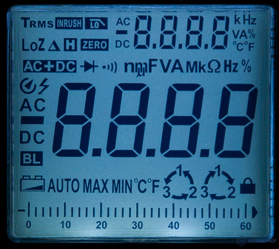 - символьный ЖК-дисплей, разрядность 4 знака (максимальное индицируемое число 6000), подсветка;