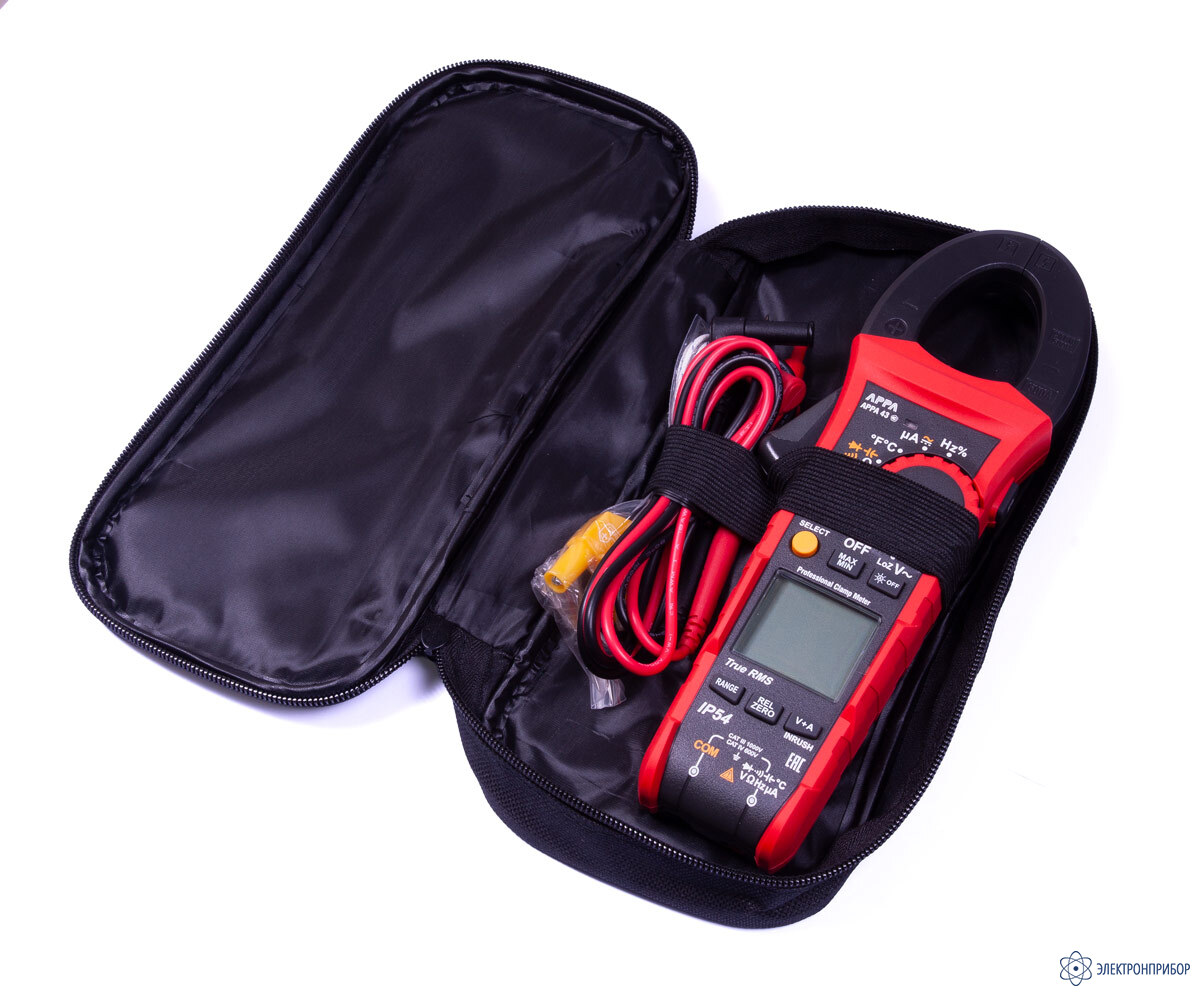 № Наименование Количество 1 Клещи электроизмерительные APPA 43 1 2 Измерительный провод 2 3 Термопара К типа 1 4 Сумка 1 -