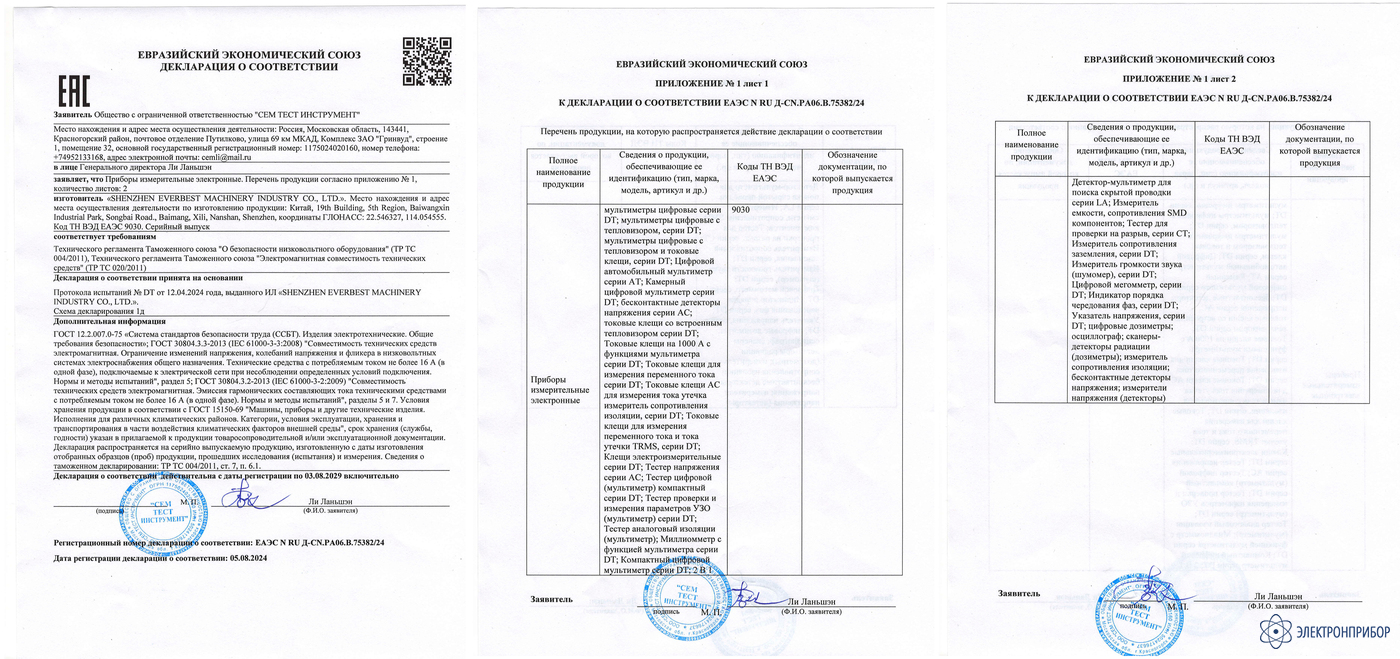 № Наименование Количество 1 Профессиональные токовые клещи для измерения переменного тока DT-355 1 2 Комплект щупов 1 3 Термопара K-типа 1 4 Элемент питания 9 В типа Крона 1 5 Кейс 1 6 Руководство пользователя 1 -