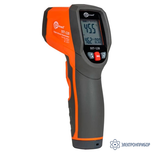 DIT-120 – инфракрасный измеритель температуры (пирометр). Современный прибор, позволяющий бесконтактным методом измерить температуру поверхности любых объектов: электронные компоненты, пластик, металл, дорожные покрытия, пластик, дерево, легко воспламеняемые объекты.