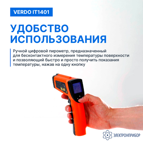 VERDO IT1401 — пирометр портативный (-50…580°С)/(±2% или ±2°С); DS=16:1; k=0,1…1,0; 2 лазера