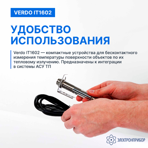 Инфракрасный стационарный пирометр VERDO IT1602 состоит из инфракрасного датчика, оптической системы и электронной схемы преобразования, заключённых в корпус из нержавеющей стали. Этот прибор предназначен для бесконтактного измерения температуры различных объектов с помощью инфракрасного излучения.