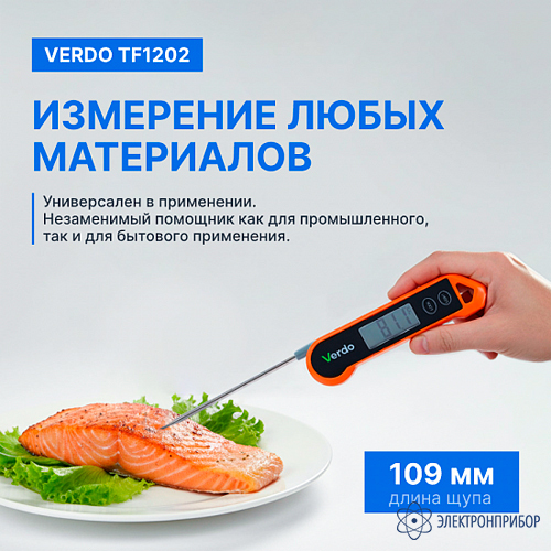 Цифровой термометр Verdo TF1202 — современное устройство, предназначенное для точного контроля температуры жидких, вязких и сыпучих материалов. Идеально подходит для пищевой промышленности, лабораторных исследований и производственных целей, а также для контроля технологических процессов.