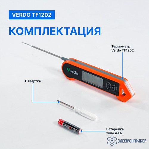 № Наименование Количество 1 Термометр цифровой со складным зондом VERDO TF1202 1 2 Руководство по эксплуатации 1 -