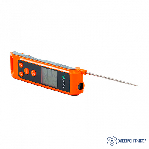 Термометр Verdo TF1401 представляет собой профессиональный измерительный прибор комбинированного типа, оснащённый как инфракрасным датчиком, так и контактным термозондом для комплексного температурного мониторинга.