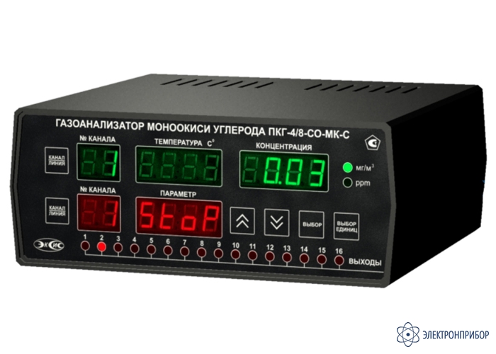 - ПКГ-4/8-C-СО-16A - стационарный восьмиканальный газоанализатор монооксида углерода (16 аналоговых выходов);