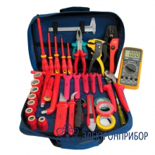 № Наименование Количество 1 Цифровой мультиметр с функцией прозвонки, до 1000 В 1 2 Стриппер для снятия изоляции с кабеля 0,2-6 мм 1 3 Стриппер для снятия изоляции с кабеля 4-25 мм 1 4 Пресс-клещи для опрессовки наконечников до 6 мм2 1 5 Плоскогубцы 180 мм до 1000 В 1 6 Бокорезы 180 мм до 1000 В 1 7 Отвертка шлицевая диэлектрическая SL 5.5x125 мм до 1000 В 1 8 Отвертка шлицевая диэлектрическая SL 4.0x100 мм до 1000 В 1 9 Отвертка шлицевая диэлектрическая SL 8.0x175 мм до 1000 В 1 10 Отвертка крестовая PH 1*100 до 1000 В 1 11 Отвертка крестовая PH 2*100 до 1000 В 1 12 Индикаторная отвертка 12-220 В 1 13 Нож кабельный до 1000 В 1 14 Нож прямой до 1000 В 1 15 Нож монтажный с выдвижными сменными лезвиями 1 16 Кабелерез изолированный до 14 мм до 1000 В 1 17 Ключ рожковый односторонний изолированный 10мм до 1000 В 1 18 Ключ рожковый односторонний изолированный 12мм до 1000 В 1 19 Ключ рожковый односторонний изолированный 13мм до 1000 В 1 20 Ключ рожковый односторонний изолированный 17мм до 1000 В 1 21 Ключ рожковый односторонний изолированный 19мм до 1000 В 1 22 Ключ с присоединительным квадратом изогнутый до 1000 В 1 23 Вороток Т-образный до 1000 В 1 24 Удлинитель 125 мм для торцевых головок до 1000 В 1 25 Шестигранная торцевая головка 1/2’ – 10 мм до 1000 В 1 26 Шестигранная торцевая головка 1/2’’ – 12 мм до 1000 В 1 27 Шестигранная торцевая головка 1/2’ – 13 мм до 1000 В 1 28 Шестигранная торцевая головка 1/2’ – 14 мм до 1000В 1 29 Шестигранная торцевая головка 1/2’’ – 17 мм до 1000 В 1 30 Шестигранная торцевая головка 1/2’’ – 19 мм до 1000 В 1 31 Шестигранная торцевая головка 1/2’ – 22 мм до 1000 В 1 32 Шестигранная торцевая головка 1/2’ – 24 мм до 1000 В 1 33 Штангенциркуль 125 мм 1 34 Перчатки диэлектрические 1 35 Изолента красная 1 36 Изолента желтая 1 37 Изолента зеленая 1 38 Блокнот 1 39 Карандаш 1 40 Ручка шариковая 1 41 Сумка для инструментов на молнии через плечо 1