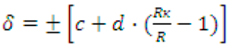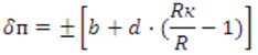Пределы допускаемой основной погрешности от нормирующего значения в течение года со дня поверки после изготовления или первоначальной аттестации и в течение любого года эксплуатации, % определяются по формуле