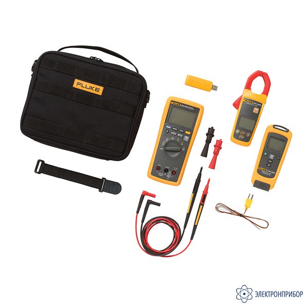 № Наименование Количество 1. Беспроводной мультиметр Fluke CNX 3000 1 2. Беспроводной модуль измерительных клещей переменного тока Fluke CNX a3000 1 3. Беспроводной термоэлектрический модуль (тип К) Fluke CNX t3000 1 4. Беспроводной ПК-адаптер и ПО Fluke CNX pc3000 1 5. Измерительные провода TL175 1 6. Зажимы "крокодил" AC175 1 7. Точечный щуп-термопара типа К 80PK-1 1 8. Ремешок на магнитной подвеске 1 9. Мягкая сумка для переноски 1 -