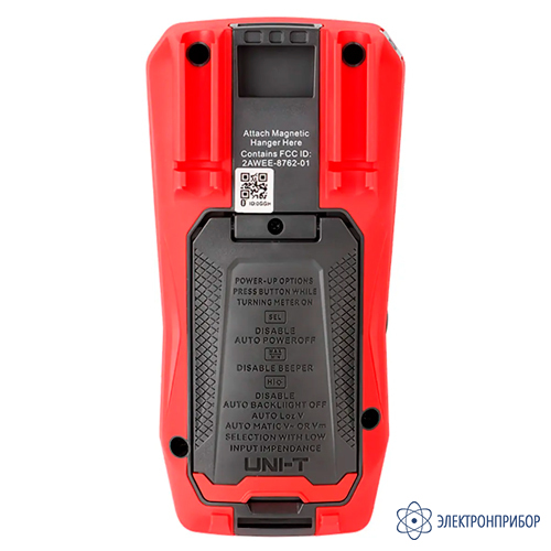 Удобство и безопасность в работе. Прибор оснащен белой подсветкой дисплея для работы в условиях недостаточного освещения и функцией удержания данных (HOLD). Он поддерживает режимы MAX/MIN/AVG, REL и тихий режим (отключение зуммера). Магнитный держатель UT-B23 (приобретается отдельно) позволяет закрепить мультиметр на металлической поверхности, освобождая руки. Устройство питается от трех батареек AAA и имеет функцию автоматического отключения.