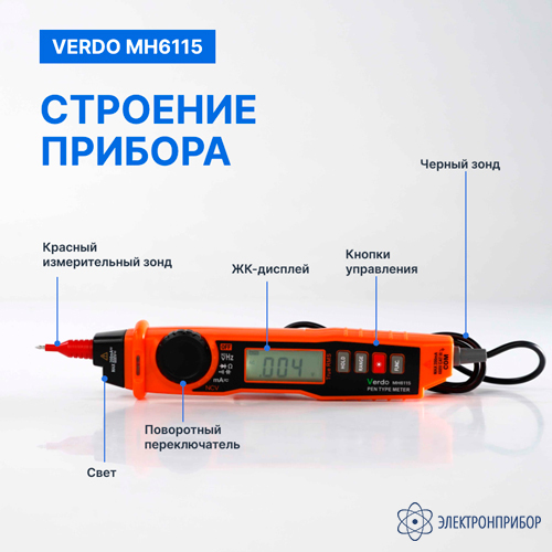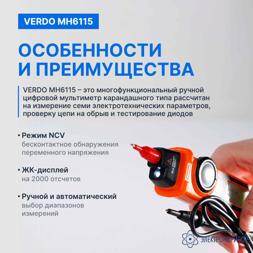 Особенности мультиметра портативного карандашного типа 0,7%, 2000 отсчетов VERDO MH6115: