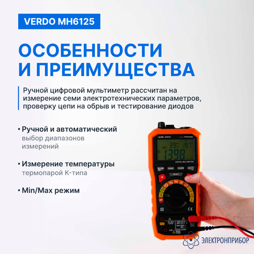 VERDO MH6125 — мультиметр портативный многофункциональный 0,7%, 6000 отсчетов