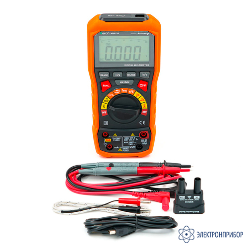 № Наименование Количество 1 Мультиметр портативный 0,7%, 6000 отсчетов VERDO MH6134 1 2 Измерительные провода 2 3 Термопара K- типа 1 4 Адаптер для тестирования биполярных транзисторов 1 5 Кабель USB 1 6 Чехол 1 -