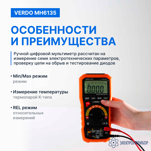 VERDO MH6135 — мультиметр портативный 0,7%, 6000 отсчетов
