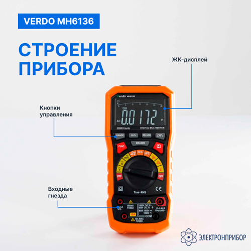 VERDO MH6136 — мультиметр портативный прецизионный 0,05%, 30000 отсчетов