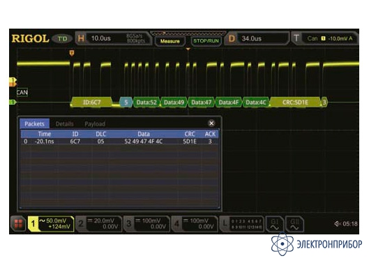 Опция анализа и запуска по шинам CAN и LIN MSO5000-AUTO для осциллографов Rigol серии MSO5000.