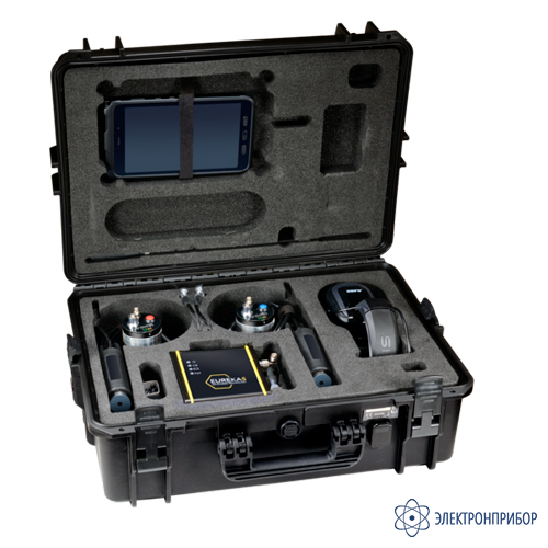 № Наименование Количество 1 Датчик акселерометра 2 2 Удлинительный кабель акселерометра 5 м 2 3 Красный передатчик 1 4 Синий передатчик 1 5 Антенна передатчика 2 6 Блок приемника 1 7 Антенна приемника 1 8 Наушники 1 9 Прочный транспортировочный кейс со встроенным зарядным устройством 1 10 Зарядное устройство 110/240В 50/60 Гц 1 11 Зарядное от автомобильного прикуривателя (12 В) 1 12 Android-планшет пылевлагозащищённый 1 Приложение EUREKA GO доступно бесплатно в Android Play Store.