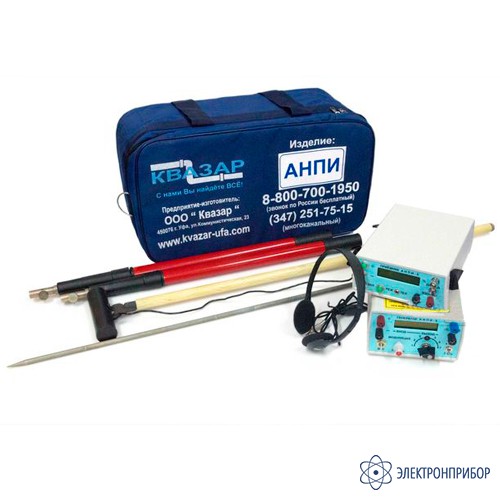 № Наименование Количество 1. Генератор сигнальный АНПИ 1 2. Приемник селективный АНПИ 1 3. Антенна электромагнитная 1 4. Телефоны головные 1 5. Клипса контактная магнитная 1 6. Штырь с гальванической связью 1 7. Штырь заземления 2 8. Провод (двойной) подключения генератору к источнику питания (2 м) 1 9. Провод подключения генератора к нагрузке (7 м) 2 10. Провод для подключения штыря заземляющего к приемнику (4 м) 1 11. Провод для подключения штыря заземляющего к приемнику (1,5 м) 1 12. Аккумулятор 12 В 1 13. Зарядное устройство 1 14. Элемент питания тип 316/АА/LR6 3 15. Паспорт, инструкция по эксплуатации и техническое описание 1 16. Сумка-кейс 1 Дополнительная комплектация искателя повреждения изоляции трубопроводов АНПИ: