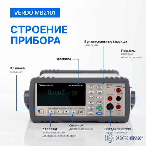 VERDO MB2101 — это цифровой мультиметр на 4 1/2 разряда, обладающий высокой точностью измерений (до 0,03%), стабильностью и скоростью