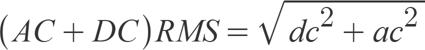 В этом режиме на дисплей выводится истинное среднеквадратичное значение переменного напряжения или тока с учетом постоянного смещения сигнала. Данное показание отличается от предыдущего учетом постоянного смещения в сигнале и определяется следующей формулой: