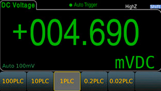 В приборах VERDO MB2105, VERDO MB2106 и VERDO MB2107 можно выбрать NPLC — это количество циклов линии электропередачи, в течение которых происходит процесс интегрирования АЦП для получения результата измерения прибора (1 цикл = 1/50 Гц = 20 мс). В ходе измерения постоянного напряжения, постоянного тока и сопротивления, температуры точность снижается из-за шума переменного тока, вызванного линией электропередачи. Чем дольше время интегрирования, тем выше точность, но тем медленнее измерение. 1PLC, 10PLC, 100PLC могут заметно подавлять шум блока питания мультиметра. Выбор 100PLC для особо точных измерений может обеспечить наилучшее шумоподавление, но измерения будут проводиться с меньшей скоростью.