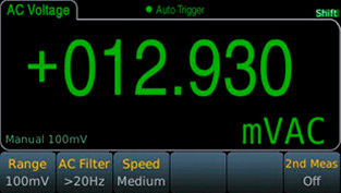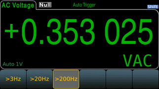 При измерении переменного напряжения и тока в приборах VERDO MB2105, VERDO MB2106 и VERDO MB2107 можно выбрать три варианта фильтра переменного тока: 3 Гц, 20 Гц и 200 Гц. Выбранный фильтр должен быть меньше частоты тестового сигнала. Чтобы быстрее получать стабильные данные, фильтр лучше всего выбирать так, чтобы он был близок к тестовой частоте вашего входного сигнала. Например, если входной сигнал составляет 300 Гц, стабильные данные могут быть получены для установки фильтра 200 Гц.