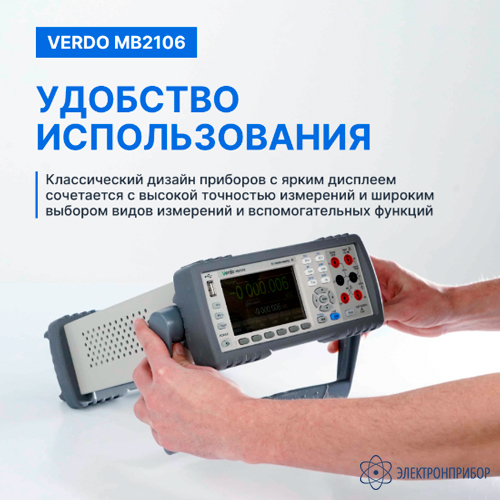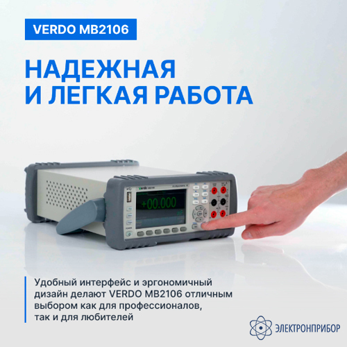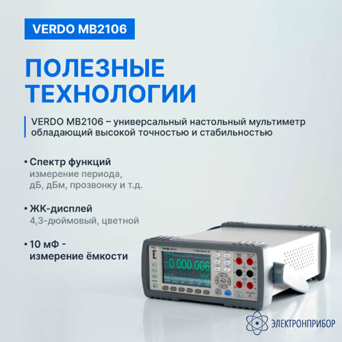 VERDO MB2106 — это цифровой мультиметр на 6 1/2 разряда, обладающий высокой точностью измерений (до 0,0035%), стабильностью и скоростью (до 1000 показаний/с).