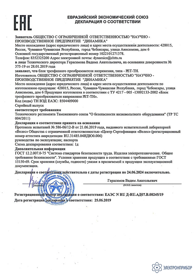 Назначение блока трехфазного преобразователя напряжения РЕТ-ТН: