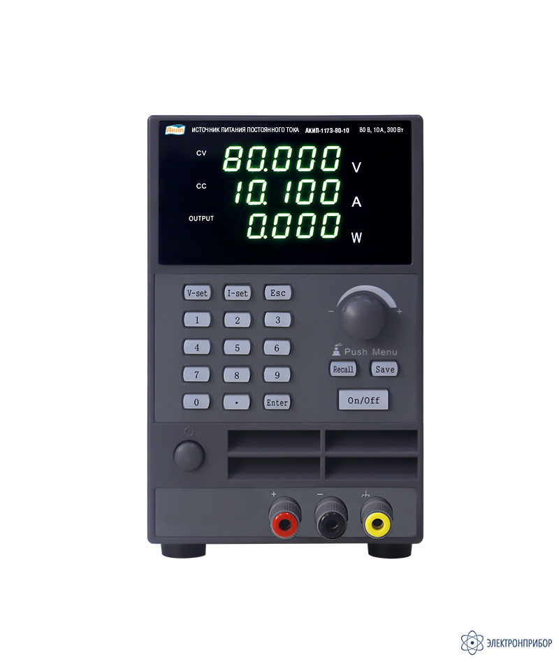 № Наименование Количество 1 Источник питания АКИП-1173-80-10 1 2 Кабель питания 1 3 Измерительные провода (комплект) 1 4 RS-232 кабель 1 -