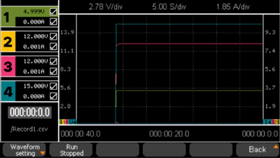 Программируемый линейный источник питания постоянного тока серии АКИП-1177 благодаря цветному дисплеем с разрешением 480×272 позволяет отображать изменения формы сигнала напряжения и тока по всем 4 каналам.