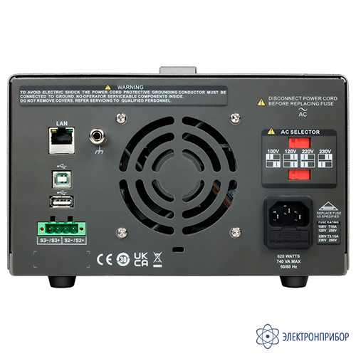 ± (0,01 % + 2 мВ) при изм. тока нагрузки 4-х проводная схемаУровень пульсаций (до 20 МГц) ≤ 350 мкВ скз Нестабильность ± (0,1 % + 3 мА) при изм. напряжения питания ± (0,1 % + 3 мА) при изм. напряжения нагрузки Дистанционное управление Интерфейсы USB, LAN, опция - GPIB Общие данные Условия эксплуатации: