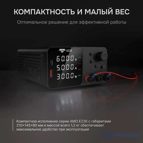 Источник питания AMO E233 — это профессиональное решение для задач, требующих повышенного напряжения. С диапазоном 0,01–60 В при токе до 5 А и мощностью до 300 Вт, он находит применение в промышленной автоматике, телекоммуникациях, испытаниях изоляции и питании специализированного оборудования.