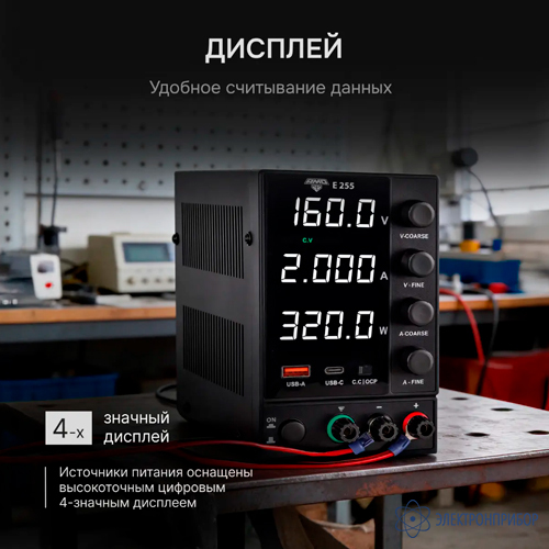 Экстремальные напряжения под полным контролем. Источник питания постоянного тока позволяет плавно и безопасно повышать напряжение до 160 В с шагом всего 10 мВ, что делает его идеальным для пошаговых испытаний диэлектриков, настройки высоковольтных генераторов и проверки устойчивости компонентов к перенапряжениям. Система стабилизации поддерживает заданные параметры даже при резких изменениях сопротивления нагрузки, исключая выбросы и скачки, которые могут повредить чувствительные элементы. Цифровой ваттметр обеспечивает полный контроль над потребляемой мощностью без подключения внешних приборов.