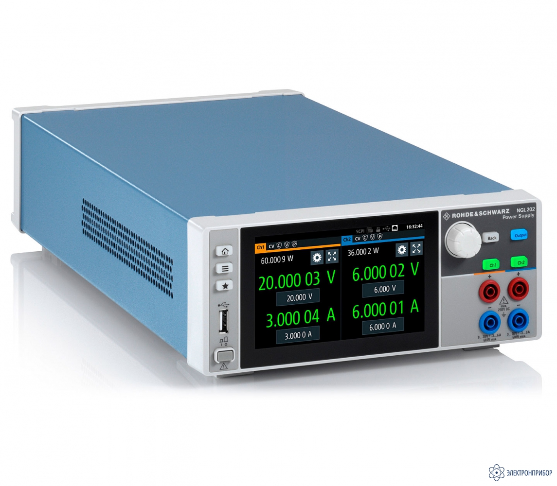 Параметр NGL201 NGL202 Количество каналов 1 2 Напряжение на канал от 0 В до 20 В Макс. ток на канал ≤ 6 В: 6 A, > 6 В: 3 A Макс. выходная мощность на канал 60 Вт Время восстановления нагрузки < 30 мкс Пульсации и шум < 500 мкВ (СКЗ) / < 1 мА (СКЗ) Разрешение при установке значений 1 мВ/0,1 мА Разрешение при снятии показаний 10 мкВ / 10 мкА Электронные нагрузки 60 Вт / 3 А -