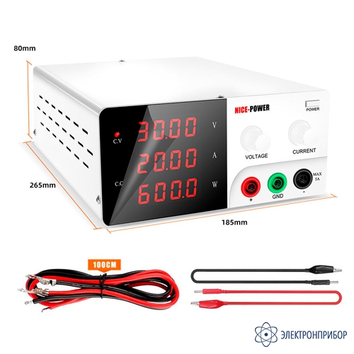 Параметр Значение Количество каналов 1 Тип импульсный Выходное напряжение 0~30 В, точность установки 0,01 В Выходной ток 0~20 А, точность установки 0,01 А Высокая стабильность и малые пульсации ≤ 50 мВ rms, ≤ 50 мА rms Малое влияние нагрузки ≤ 0,5% ±3 мВ, ≤ 0,2% ±3 мА Малое влияние сетевого напряжения ≤ 0,1% ±3 мВ, ≤ 0,2% ±3 мА Вентилятор охлаждения есть Режимы стабилизации тока и напряжения есть Индикация 4-разрядные LED-дисплеи на ток, напряжение и мощность, точность ±(0,5%+2) Защита от короткого замыкания есть Рабочая температура от 0°С до 40°С, влажность <80% Температура хранения от -10°С до 70°С, влажность <70% Питание 230 В ±10% Габариты 26,5х18,5х8 см Вес 2,2 кг Габариты в коробке 38х24х12,5 см Вес в коробке 3 кг Сравнительные характеристики источников питания Nice-Power R-SPS: