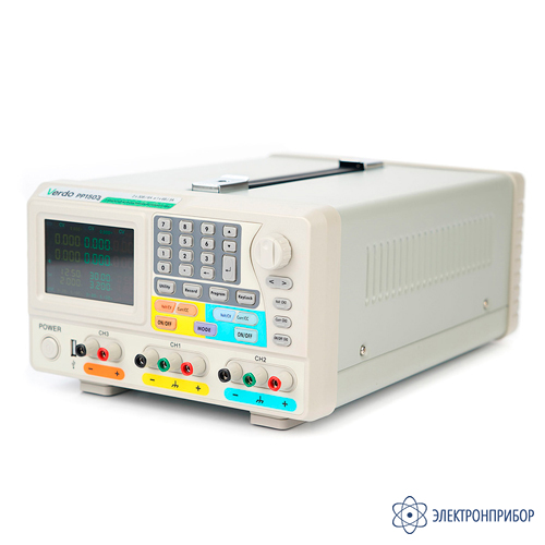 Программируемые источники питания постоянного тока VERDO PP1500 имеют традиционную линейную схемотехнику, благодаря чему выдают выходное напряжение (до 30 В или 60 В) и ток (до 3 А или 6 А) высокого качества по 3-м независимым регулируемым каналам, 1-й и 2-й из них – основные, а 3-й - вспомогательный. Поддержка параллельного и последовательного управления каналами в трекинг режиме, программируемый выход по спискам, встроенный регистратор, графический дисплей, развитые средства для подключения к ПК позволяют рекомендовать этот прибор для использования в научной лаборатории, разработчикам сложной электроники, сервисным службам и прочим.
