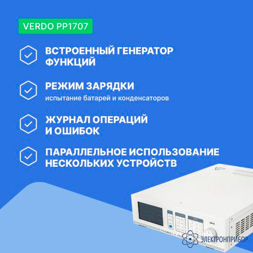 В отличие от большинства источников питания, представленных на рынке, программируемые источники питания постоянного тока VERDO PP1700 позволяют пользователю кроме обычных режимов стабилизации напряжения или тока, выбирать также режим стабилизации мощности. Это обеспечивает выдачу в нагрузку заданного постоянного уровня мощности.