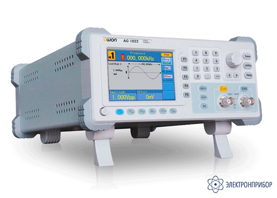 AG1022 - многофункциональный генератор-частотомер, объединивший в одном приборе функциональный генератор и генератор сигналов произвольной формы. Использование технологии прямого цифрового синтеза (DDS) предоставляет возможность получения точного, стабильного выходного сигнала с низкими искажениями. Дружественный пользовательский интерфейс и удобное расположение органов управления позволяют быстро освоить работу с прибором. AG1022 имеет интерфейсы USB (в том числе обеспечивается поддержка внешнего USB-накопителя), RS232. Всё это позволяет удовлетворить разнообразные потребности пользователя.