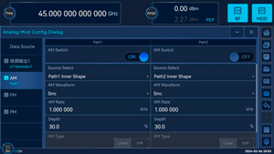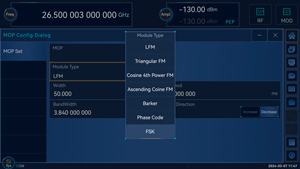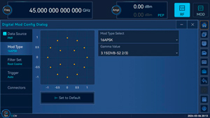 Генератор может создавать более чем 30 видов цифровых модуляций (таких как PSK, FSK, QAM, APSK).