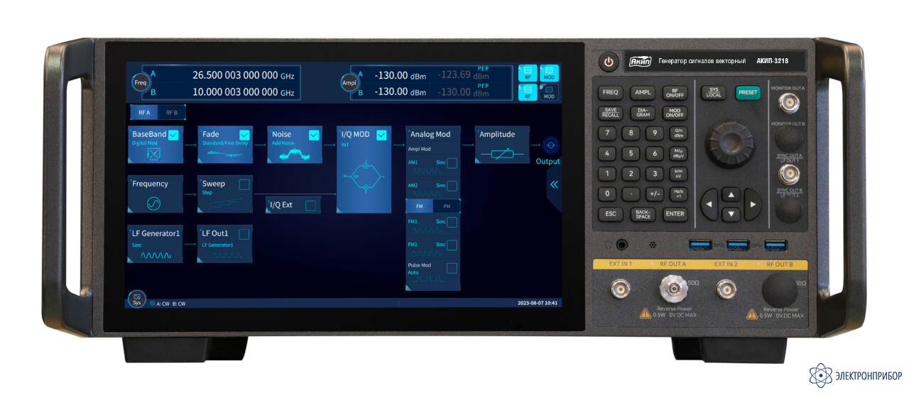 Векторный генератор сигналов АКИП-3218 имеет высокую максимальную выходную мощность (тип):
