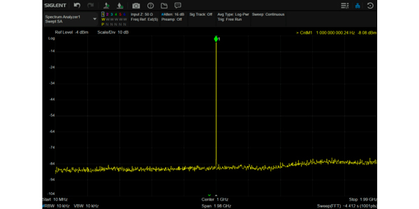 <-120 дБн/Гц при отстройке на 10 кГц от несущей 1 ГГц